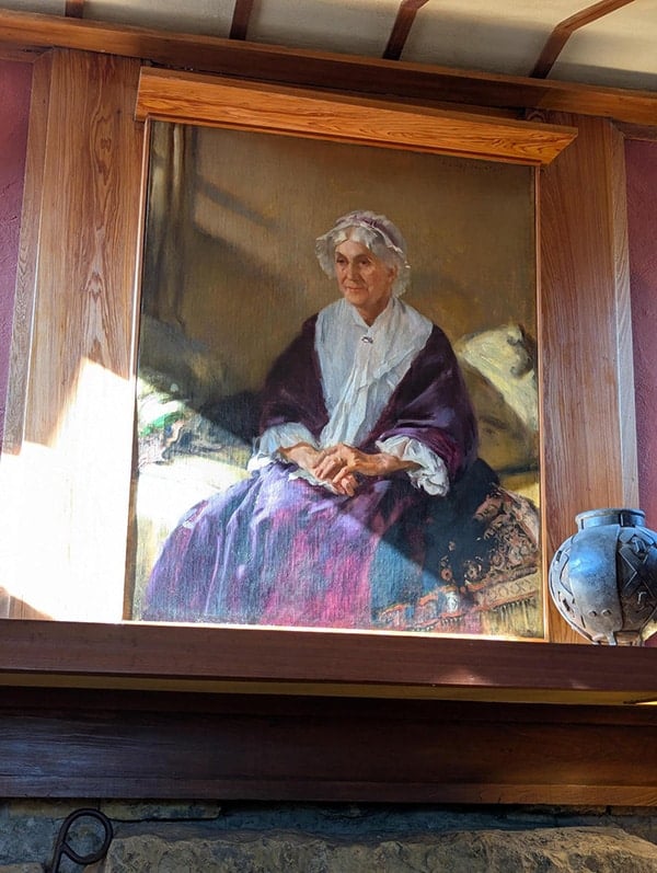 The portrait after conservation and rehanged in Wright’s studio at Taliesin. Anna Lloyd Wright, John Young Hunter (Scottish, 1874-1955), 1916, oil on canvas, 49 x 40 inches, Frank Lloyd Wright Foundation Collections, 1108.200.