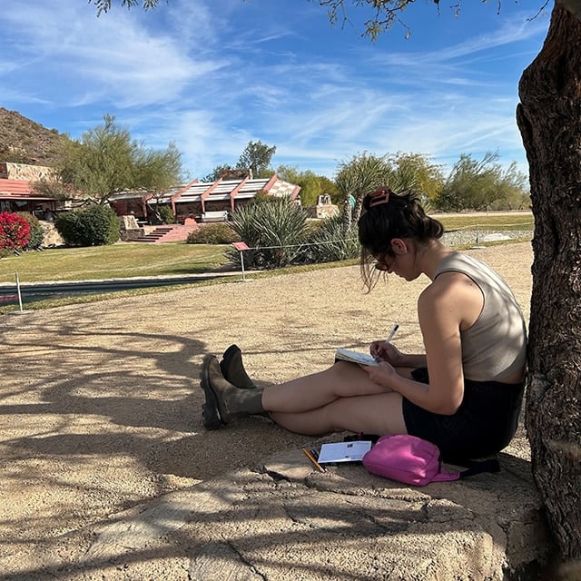 We encourage you to share your sketches via social media using the hashtag #TaliesinWest and tagging Taliesin West on Instagram @WrightTaliesin or on Facebook – Frank Lloyd Wright Foundation or create a story and send it to us on Instagram, and we’ll share it.